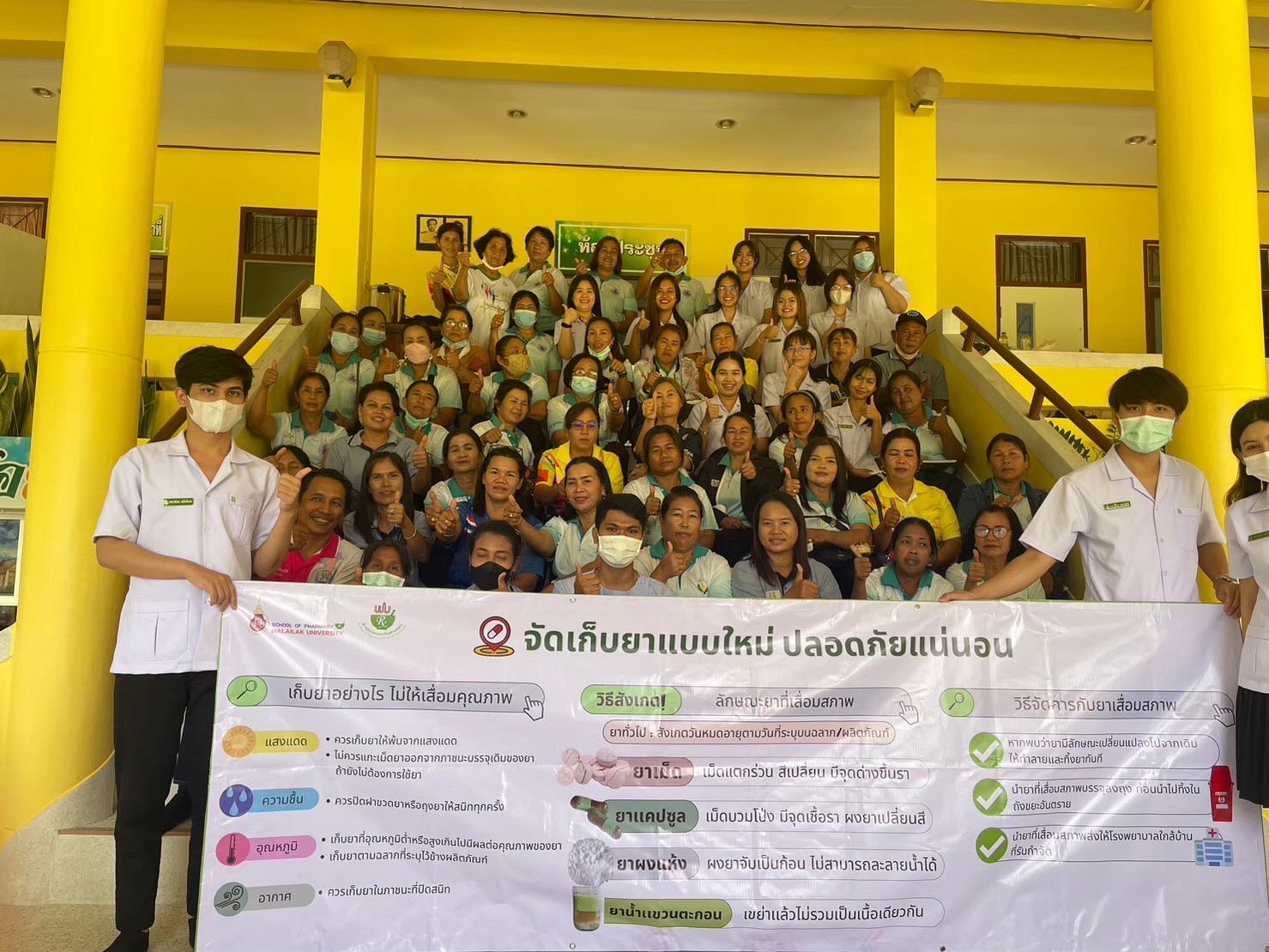 The social engagement project titled “The development of methods for caring and giving advice about medicines to patients and public health volunteers. of Ban Pradu Hom Subdistrict Health Promoting Hospital, Nakhon Si Thammarat Province” organized by the School of Pharmacy Walailak University in collaboration with Ban Pradu Hom Subdistrict Health Promoting Hospital, which is the main sector in caring for and promoting the health of people in that area. The objective is to integrate knowledge in pharmacy. for public health care together with transferring knowledge and acting as a health care mentoring section for community health service units and the village health volunteer leaders (VHVs), Praduhom Subdistrict. In addition, this project aims to promote good health for the people and the Ban Pradu Hom community. and solve health and drug use problems at the community level. The procedure of community health development consists of the participation of analyzing and evaluating health and environmental problems within the community. A forum is organized to exchange experiences of working with people in the community and interdisciplinary fields. Moreover, the project sets the section of the village health volunteers to participate in daily home visits with the training approach concerned about drug use problems. This would lead to the development of methods for caring for patients with medicines and providing medication advice to patients and village volunteers. And supporting the creation of a foundation knowledge regarding drug use at the community level that focuses on the elderly with chronic diseases by developing knowledge alongside village health volunteer leaders (VHVs) and patient caregivers at the family level (caregivers) to achieve participatory healthcare at the household and community levels. This is related to Sustainable Development Goal 3: ensuring a healthy living environment and promoting the well-being of all, and it is consistent with the indicators of THE Impact Ranking Education, section 3.3.2; Walailak University delivers outreach programs in the local community to improve health and well-being in the community to treat disease for community members: the elderly, bedridden patients (disadvantaged people), and immigrant who come to receive treatment at the Subdistrict Health Promotion Hospital. Moreover, there is an integration of teaching and academic services in the form of Social Engagement to be utilized in solving problems, developing communities/society, and developing teaching and learning in the PHA62-463 Family and Community Pharmacy course, that 4th Pharmacy students can practice in the community areas which are the educational outreach activities beyond campus consistent that related to the indicators of THE Impact Ranking Education, sections 4.3.4 and 17.2.1.