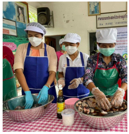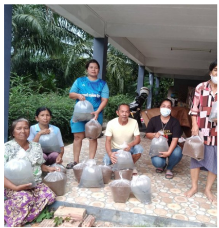 From the COVID-19 situation, it was found that the community had problems in many areas, including: 1. Economic problems, From household income not being enough to cover expenses (average income per person 63,850 baht per year, average household income per household 165,800 baht per year, average expenses per person 63,000 -85,000 baht per year, average household expenses per household 155,800 -195,000 baht per year, debt in the system, 105 households (34.76 percent ) Informal debt of 120 households (39.73 percent), average debt per household 20,000-30,000 baht (village level survey of 2022) The reason is that provincial workers were laid off. Come back home. People in the community cannot go out to work for hire, some of whom may be sick with COVID-19 or high-risk groups who are quarantined. or the workplace is closed for business both inside and outside the community and the market in the village. Agricultural products cannot be sold outside the village. Product prices and fertilizer prices have increased. Debt burden both inside and outside the system and various groups in the community such as The Catfish Farming Community Enterprise Group, which had 30 members from the original group, had an income from selling catfish of 3000-4000 baht per round of fishing (3 months). It lacked income because there was no market. Thai Dessert group, which has 12 original members, makes Thai desserts according to orders from conferences and sells them in flea markets in the community, and coffee shops Earning income from selling desserts is 1000-2000 baht per person per month. Unable to make desserts and sell them. As a result, the income of community members decreased. 2. Health problems, It was found that people in the Na Phru community 220 people (23.68 percent) were infected with COVID-19, 1 person died (0.1 percent) 98 people (44.54 percent) developed Long Covid, had symptoms of fatigue, aches, and pains, and had complications. As a result, you must periodically seek medical treatment, have to take time off work, or resign from your previous job. Increased expenses and stress When unable to work as usual, income decreased. Ban Phra Phrom Subdistrict Health Promoting Hospital joined village health volunteers to visit homes to screen and assess mental health. After being sick with COVID-19, it was found that 12 people were stressed and 105 people were worried (data from Ban Phra Phrom Subdistrict Health Promoting Hospital, 2022) 3. Social problems, There was a stigma against COVID-19 patients in the high-risk group who refused to quarantine. Information is concealed Because I don't want to stop working. Afraid of losing income therefore increasing the spread of infection both inside and outside the community. Government agencies are taking care of food for quarantined and sick groups. Insufficient, complaints in the community followed. causing conflicts in community relations Lack of group activities due to social distancing measures. The panic of society makes people not dare to leave their homes. Lack of love and unity in the community 4. Environmental problems, Infected waste found in the community from the use of face masks, ATK test kits, and hand-washing liquid bottles. Alcohol spray bottle Resulting in infectious waste But the disposal of infectious waste is not correct. There is risk of spreading COVID-19 germs in the community has increased.