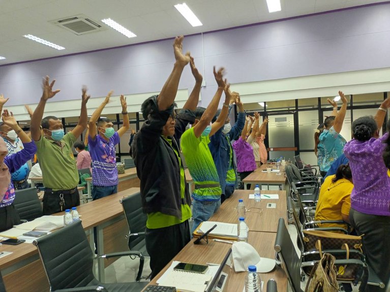 Walailak University realizes that each person's life is very important in helping them to have good health. Therefore join with the community let the leaders and people in the community come together to create a project to request budget and support from Thai Health Promotion in driving work to solve problems under the operations and knowledge from network partners. By restoring the original professional group Non-toxic vegetable planting group to increase income and improve the quality of life of people in the community. There are additional activities. "Aerobic dance community" to reduce accumulated stress Concerns The various groups of the village that are the capital and potential of the community consist of occupational groups such as fertilizer production groups, cattle raising group, curry group, weaving group, broom making group and integrated agriculture group. There are network partners supporting community operations. Community leaders drive the work of managing community problems under existing funds and potential. To solve the economic problems of the community Under the creation of community participation to combat the COVID-19 outbreak situation. Determination for people in the community to have additional careers, increase income, reduce expenses, reduce stress and anxiety. Help people have better mental health, affects the quality of life.