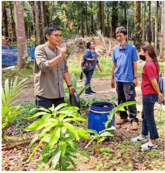 The main target group is the working group of 15 people, and the group unemployed, 100 people. The secondary target group includes people in the area, totaling 465 people, the Effect of COVID-19 and have situation, and methods of operation. and receiving for raising freshwater fish (leaving the fish with the community) by Tha Sae District Fisheries and local philosophers teaching how to use local food for raising fish. Practicing safe working postures. agricultural officials Teach growing vegetables from organic compost, how to take care of your health in a timely manner, and how to bring knowledge from the Sufficiency Economy into the community. Household Accounts Council a team of officials from Rab Ro Subdistrict Health Promoting Hospital and staff of the Chumphon Provincial Audit Office and local philosophers create a space to promote professional groups, create income, online marketing, regardless of community members doing projects for them. Successful completion of the project can be extended to everyone in the community.