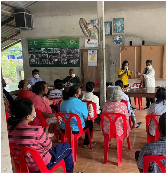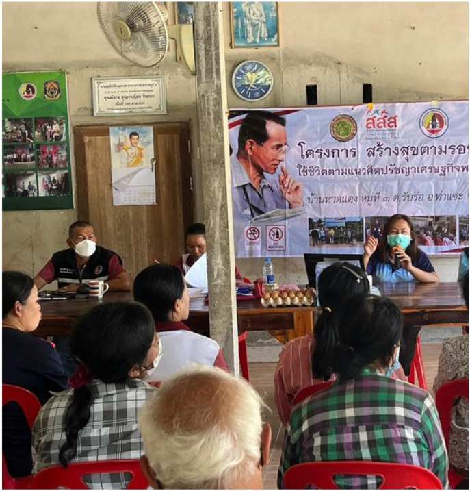 The School of Nursing, Walailak University, Sees the importance of helping people have good health and have sufficient income in each household. that were affected by the COVID-19 situation and the Ban Hat Taeng community was also greatly affected by the COVID-19 situation, so a project was created “Create happiness following in Father's footsteps, living according to the Sufficiency Economy Philosophy, Ban Hat Taeng, Village No. 3, Rab Ro Subdistrict, Tha Sae District, Chumphon Province”. Has an objective. To create a group of leaders who have knowledge and skills to promote health in the community. To create a mechanism to drive health promotion work in the community and to ensure that those affected have a good quality of life, increase income, reduce household expenses, and improve the mental health of community members. The total implementation period is 12 months from 1 January 2023 - 31 December 2023.