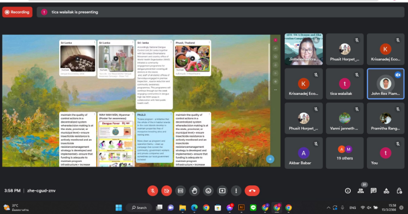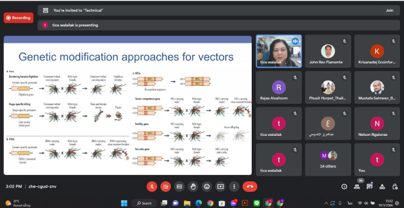 การจัดอบรมเชิงปฎิบัติการนี้ออกแบบเพื่อ (1) สร้างความเข้มแข็งในการอบรมเชิงปฎิบัติการที่ป้องกันการเกิดโรคไข้เลือดออกและโรคซิก้า สภาพภูมิอากาศที่เปลี่ยนแปลงและการพัฒนาที่ยั่งยืน (2) เพื่อสร้างชุมชนที่สามารถป้องกันการเกิดโรคไข้เลือดออกและโรคซิก้า ในประเทศที่กำลังพัฒนา และ (3) การติดตามทิศทางปัจจัยทางสิ่งแวดล้อมที่ส่งผลต่อความเสี่ยงในการเกิดโรคไข้เลือดออกและโรคซิก้า ในเชิงเวลาและพื้นที่ มีผู้เข้าร่วม 61 คน จาก 11 ประเทศ ได้แก่ ประเทศอาเซอร์ไบจัน บาห์เรน คุกไอซ์แลนด์ เอควาดอร์ อินเดีย โมลโดวา ปากีสถาน ซาอุดิอาระเบีย ศรีลังกา ซูดานและอูเบคกีสถาน ผ่านระบบออนไลน์กูเกิ้ลมีท โครงการนี้ ตอบโจทย์ SDG ข้อ 3.3.1 Current collaborations with health institutions เราสร้างความร่วมมือระดับพื้นที่ ชาติและนานาชาติ 27 ประเทศด้านสาธารณสุขเพื่อปรับปรุงสุขภาพและความเป็นอยู่ ตอบโจทย์ SDG รอง 2 ข้อคือ ข้อ 17.2.1 Relationships with regional NGOs and government for SDG policy เราสร้างความร่วมมือระดับชาติ ทั้งภาครัฐและภาคเอกชนในการพัฒนานโยบายด้าน SDG ประกอบด้วยการหาปัญหา การพัฒนานโยบายและการจัดการ และข้อ SDG 17.2.4 Collaboration for SDG best practice เราได้สร้างความร่วมมือระดับนานาชาติในด้านการวิจัย การหา Best Practice ในการทำนโยบาย SDGs