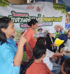 Management and driving of the project by 15 strong leaders, concrete, and continuous. Operating under the cooperation of network partners, including: the Nakhon Si Thammarat Municipality Education Office, participating as a lecturer to provide knowledge on creating professional groups. Khu Khwang Khlang Health Center District 1 has continuously developed activities to promote mental health, with community village health volunteers (VHV.) and the Nakhon Si Thammarat Municipality Community Organization Council serving as advisors and supporting speakers in organizing stress relief activities for people in the community before organizing an exchange forum. Nakhon Si Thammarat Municipality supports venues for organizing learning exchange activities and meeting places. Supporting lecturers in relevant areas. Formed as a professional group in the community: organic vegetables group and bio-organic compost group. Each group has 50 members. Agricultural products are consumed within the household to reduce household expenses and sold within the community to increase income. In addition, Walailak University Participate in science and organize training in creating online markets to increase income in the community.