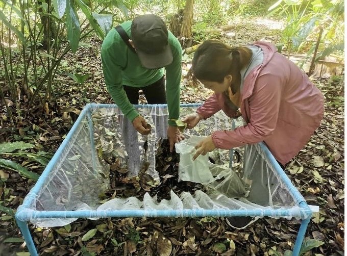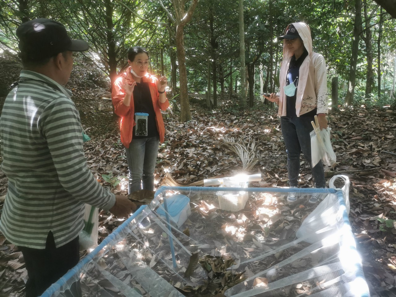 They set up temporary sample plots in the shape of 40 x 40-meter squares (1 rai) and recorded tree measurements with a center point height of 1.30 meters and the overall height of trees in the sample area. They chose allometric equations for humid and dry tropical forests in Thailand to calculate aboveground biomass (ABG) and belowground biomass (BLG). These equations involved measuring various parts of the tree above the ground, such as stems, branches, leaves, flowers, and fruits, as well as other herbaceous plants. The researchers categorized the trees into three age groups: less than 20 years old, 20-40 years old, and 60 years and older, resulting in a total of 9 samples. Data were collected three times (March, April, and May) and soil samples were taken to determine soil organic matter and analyze the data.