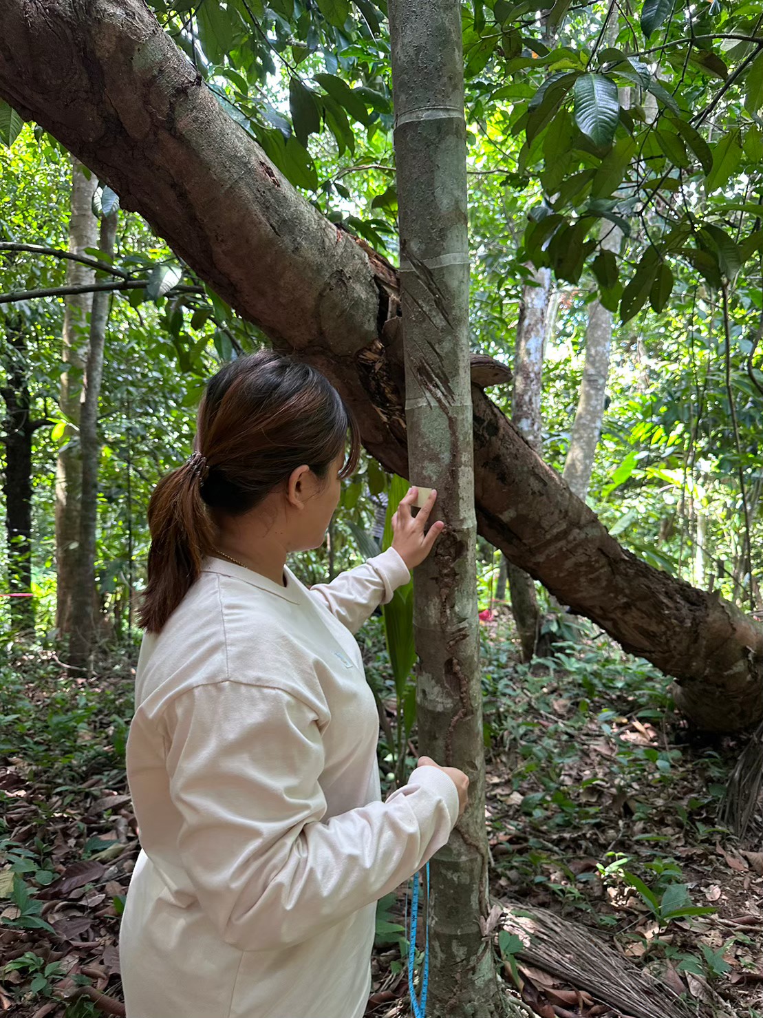 ต้นไม้มีบทบาทสำคัญในการทำหน้าที่เป็นแหล่งกักเก็บและแหล่งปลดปล่อยก๊าซคาร์บอนไดออกไซด์ การกักเก็บหรือดูดซับคาร์บอนไดออกไซด์จะผ่านกระบวนการสังเคราะห์แสง โดยพืชทุกชนิดจะนำก๊าซคาร์บอนไดออกไซด์ มาใช้ในกระบวนการเปลี่ยนสภาพเป็นเซลลูโลส และเป็นมวลชีวภาพในที่สุด ซึ่งถือเป็น กระบวนการที่มีประสิทธิภาพที่สุดในการลดก๊าซคาร์บอนไดออกไซด์ในอากาศ และยิ่งต้นไม้มีขนาดใหญ่และอายุที่ยาวนานจะสามารถช่วยในการดูดซับก๊าซคาร์บอนไดออกไซด์ได้มาก โครงการนี้ได้จัดทำขึ้นภายใต้มาตรฐานของ “โครงการ T-VER” คือ กลไกลดก๊าซเรือนกระจกภายในประเทศที่ TGO พัฒนาขึ้นตั้งแต่ปี 2557 มีชื่อเต็มว่า โครงการลดก๊าซเรือนกระจกภาคสมัครใจตามมาตรฐานของประเทศไทย (Thailand Voluntary Emission Reduction Program) ซึ่งเป็นกลไกที่มีเป้าหมายในการส่งเสริมให้ทุกภาคส่วนมีส่วนร่วมลดการปล่อยก๊าซเรือนกระจกในประเทศ จากข้อมูลที่ได้ทำการสำรวจ พบว่าโดยเฉลี่ยแล้วต้นจันทร์เทศในพื้นที่ศึกษา มีอายุ 30 – 40 ปี แล้วจากนั้นจะมีการนำเอาต้นจันทน์เทศไปใช้ประโยชน์ เช่น การสร้างบ้าน หรือผลิตเป็นฟอร์นิเจอร์ ซึ่งจะเป็นส่วนช่วยในการเก็บกักก๊าซคาร์บอนไดออกไซด์ในอากาศได้และตรงกับแนวทางของโครงการ T-VER ซึ่งโครงการวิจัยนี้มีวัตถุประสงค์ดังต่อไปนี้