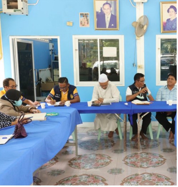 ผู้นําชุมชนร่วมเวทีชี้แจงโครงการ ที่ได้รับการสนับสนุนเงินทุน จาก สสส.สํานัก 6 ภายใต้โครงการสร้างเสริมสุขภาวะผ่าวิกฤติลดผลกระทบ การระบาดของโรคโควิด-19 ในชุมชนภาคใต้ตอนบน ชื่อโครงการฟื้นฟูอาชีพประมงพื้นบ้าน ส่งเสริมสุขภาพจิตบ้านโคกยูง
