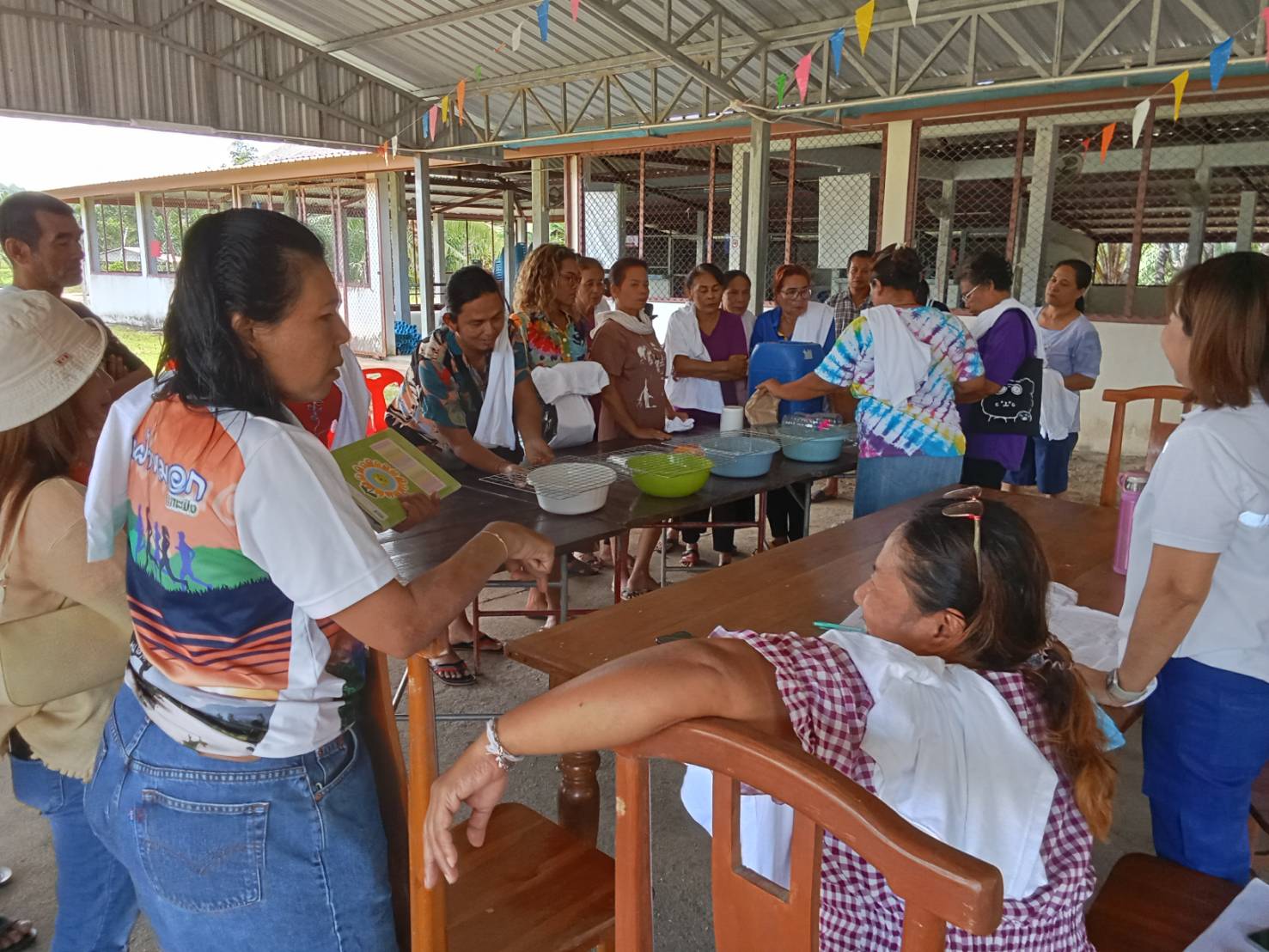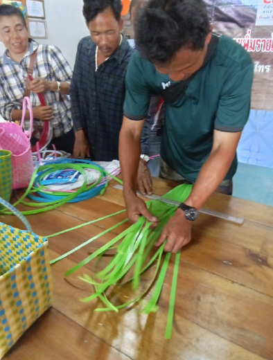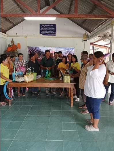 2. Operation phase: Started with an activity to educate the community on the economic changes of the community after the outbreak of COVID-19 and how to create online media to get a great sales volume. There will be lecturers giving lectures, and organizing training activities to enhance the skills of soil. The project committee invited 1 speaker who is the local philosopher in the community and has been trained by community development and there is continuous soil cultivation. He is a knowledgeable person in the cultivation of the soil, and soil-making demonstration by allowing 50 affected people to attend the training, practice practical skills, and be used to produce in the household for use in growing vegetables and increasing agricultural productivity. For basketry, the project committee invited one community scholar with knowledge and expertise in basketry to be a lecturer on items such as baskets and bags, giving advice and basic knowledge in design, creation of a pattern, demonstration of basketry for 50 affected people, including the use of creativity, expertise, and wisdom of local philosophers in creating the products.