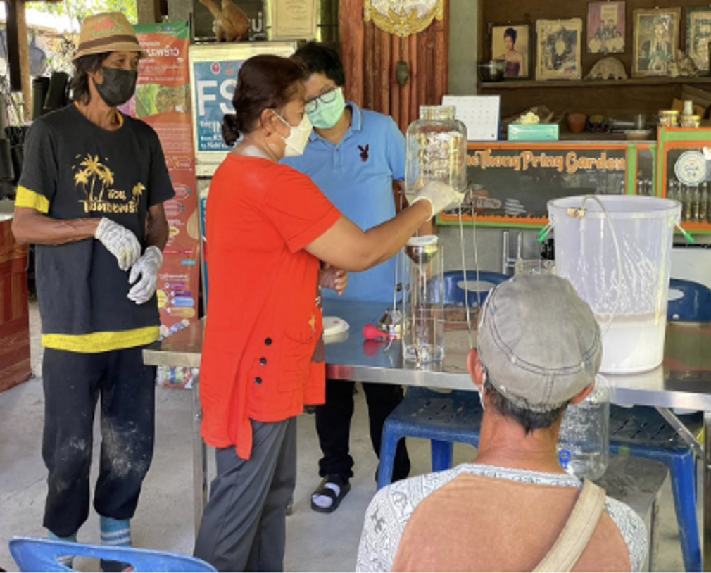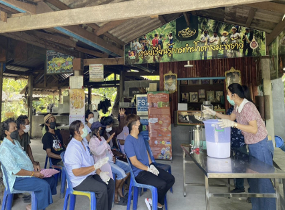 Walailak University has partnered with Nakhon Si Thammarat Rajabhat University to conduct a project "Enhancing the Virgin Coconut Oil Fermentation Process Toward Health Improvement and Food Security," funded by the Ministry of Higher Education, Science, Research, and Innovation. The project focused on developing the virgin coconut oil fermentation process by utilizing technologies and research results. The targeted groups were the Ban Mae Thong Prink Coconut Sugar Learning Center and those agriculturists who were interested in virgin coconut oil production in Pak Phun subdistrict, Mueang district, Nakhon Si Thammarat province. This outreach program was organized for the participant without any charge or cost, as Walailak University and Nakhon Si Thammarat Rajabhat University place importance on free access to community anti-poverty programs and sustainable agriculture knowledge. The outreach program also covered several subactivities, including mentorship programs, workshops, and study visit programs at the universities.