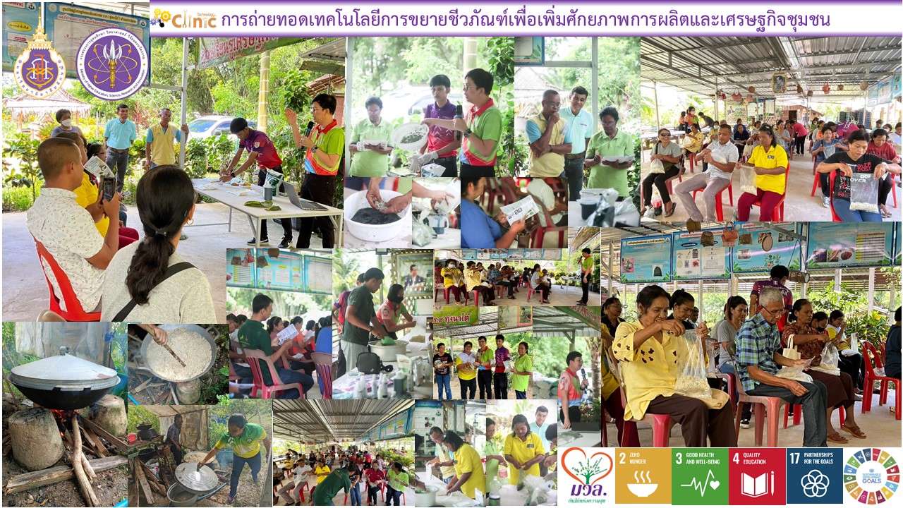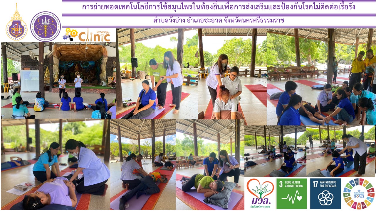 There are work steps starting from understanding, creating a collaborative work system with relevant partner networks, studying problems and needs in the areas mentioned above, providing services as well as monitoring, evaluating results, and preparing performance reports with effective tools throughout the work process. In this regard, the service to the community/target group, the results of the science, technology and innovation consulting service has a target number of 30 people, but there are actually 71 people receiving the service. The science, technology and innovation information service have a target number of 120 people but there are actually 162 people receiving the service, and the satisfaction target is set as 80 percent, but service recipients were as satisfied as 92.08 percent. A public relations channel for the activity was created through the WU Clinic Technology Facebook page. Moreover, the Clinic Technology deliver outreach project in local community by coordinating to create “The Farmers’ Ergonomics and Massage for Health Course” (SDG 3.3.2) for Wang Ang Community Village Health Volunteer Leaders together with Khuan Mai Bong Subdistrict Health Promotion Hospital to increase income for members in community tourist attraction areas. The Clinic Technology conducts follow-up and evaluation the Royally Initiated Project Learning Center at the Nakhon Si Thammarat provincial level, Wang Ang Subdistrict, that can be a model garden for using biological products in Cha-uat District. From following up on the results of local mangosteen growers in Cha-uat District who access on food security and sustainable agriculture knowledge and technology by used biological products (propagation of Trichoderma Metarhizium Beauveria to control plant diseases and pests, utilization of biochemicals in various forms, and individual plant disease consultation service) to take care of mangosteen to prevent plant diseases/pests and reduce the risk of chemical residues in produce (SDG 2.5.1) exported to Japan, China, Australia, Europe (SDG 17.2.1) found that costs can be reduced by 438,600 baht and sales revenue in 2023 will be 22.99 million baht. The B/C Ratio value is 102.42. The WU Clinic Technology also received a certificate of honor for passing the outstanding evaluation criteria for the fiscal year 2021-2022 in the MHESI Network Workshop Project to develop provincial potential with science, research and innovation at the TechnoMart event 2023 from the Office of the Permanent Secretary of the Ministry of Higher Education, Science, Research and Innovation.