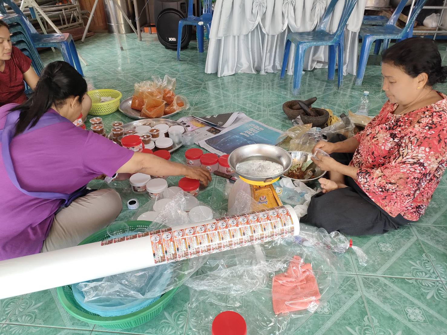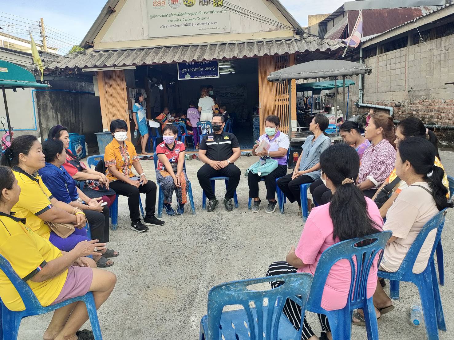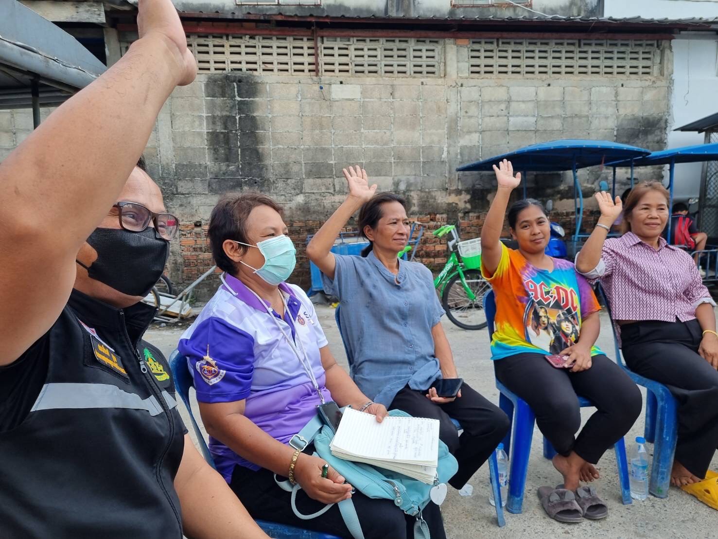6. There is a gathering of people in the audience. There was a grouping of two communities (Khu Khwang 2 and Khu Khwang 3), resulting in more raw materials being available. Therefore, it is pounded into a curry paste and sold. “Urban style sour curry recipe using enough leftover materials” The activity of planting vegetables in the kitchen garden and pounding curry paste for sale is an activity that is a base for the integration of households in two communities.