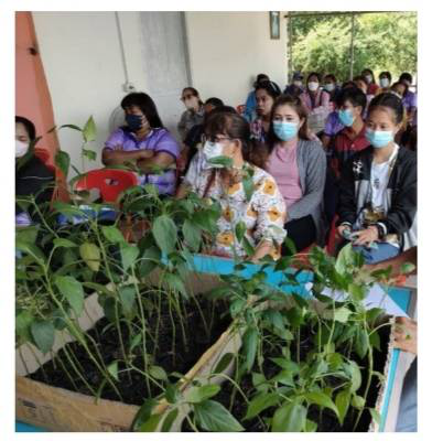 Collaboration project: The success of this project was the result of collaboration among community leaders, Pak Phanang Subdistrict Municipality, Pak Phanang Health Promoting Hospital, Pak Phanang Municipality, Pak Phanang Non-Formal and Informal Education Centre, Pak Phanang Hospital, Pak Phanang District Public Health, Thai Health Promotion Foundation, and other NGOs working in the community, and the arrangement by the School of Nursing, Walailak University. Being our team, we had built a partnership network with Pak Phanang District Agriculture Office to provide knowledge on planting NFE vegetables, supporting cooking, and food processing. The hospital promotes and supports speakers to educate and allocate event venues while sub-district administrative organizations support speakers.