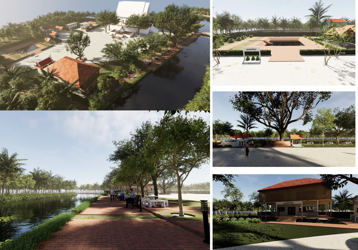 3. Remove buildings that obscure the view along the canal and preserve buildings that have value according to the opinions of stakeholders in the area by presenting them 2 times and through a process of participation of stakeholders in the community area, both public and private, including: Wat Kongkha Liap, Thasak Subdistrict Administrative Organization Pantharak Rajadej Foundation Thasak community people Walailak University