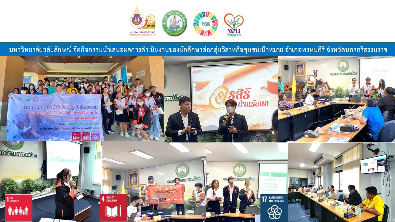 มหาวิทยาลัยวลัยลักษณ์ จัดกิจกรรมนำเสนอผลการดำเนินงานของนักศึกษาต่อกลุ่มวิสาหกิจชุมชนเป้าหมาย อำเภอพรหมคีรี จังหวัดนครศรีธรรมราช